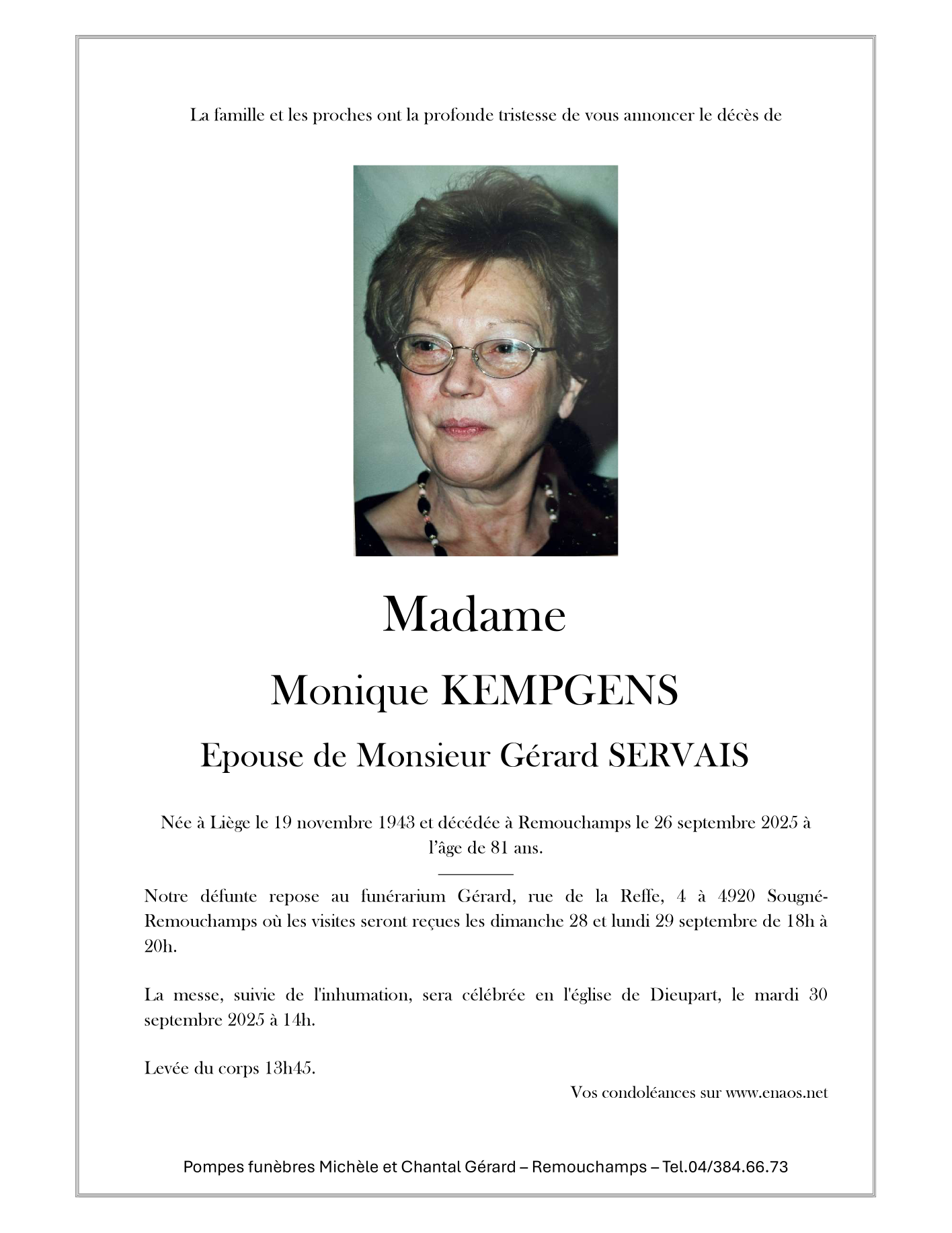 Died in Aywaille (4920, Belgium) on 26 September 2025 at the age of 81 years