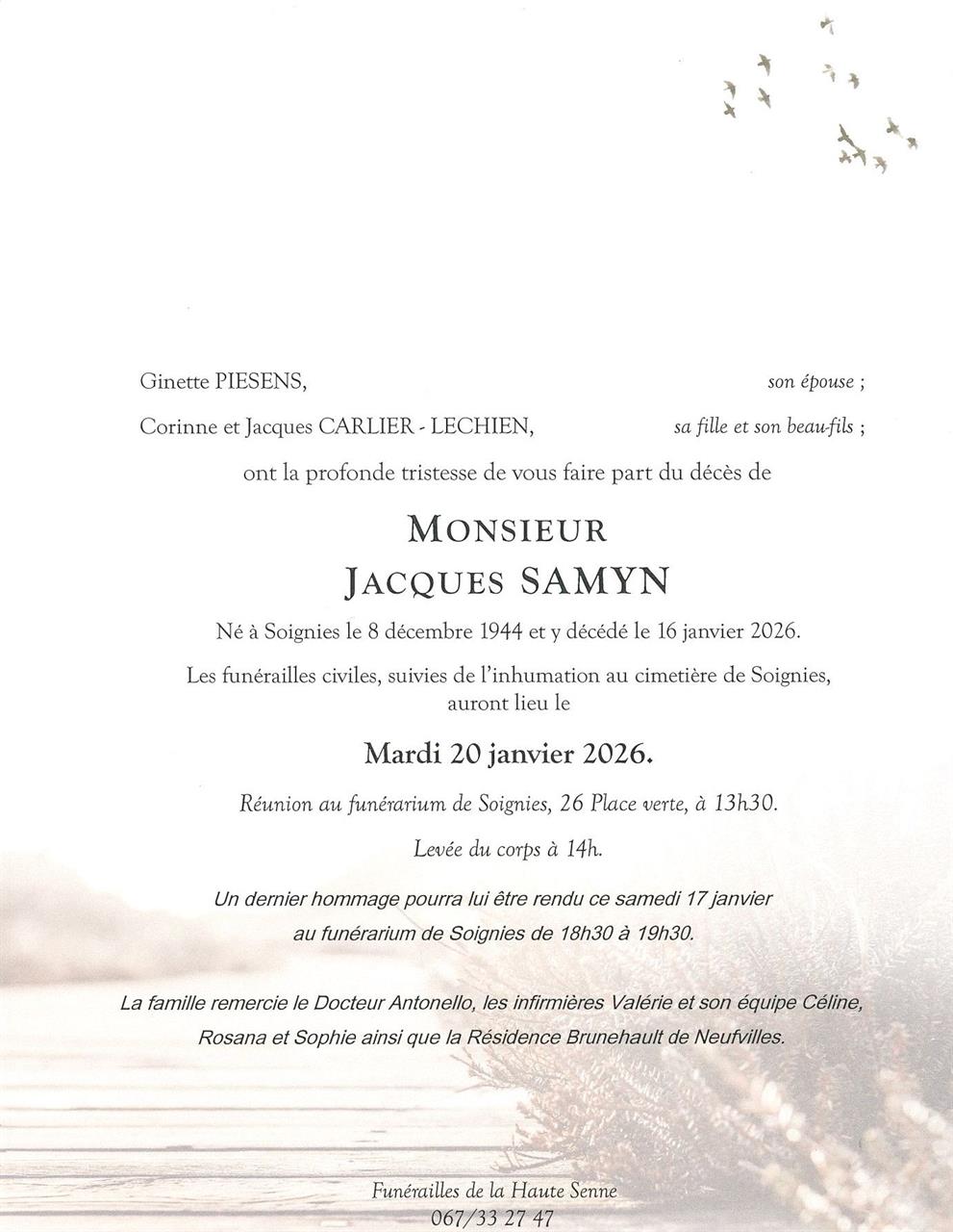 Fallecido en Soignies (7060, Bélgica) el viernes, 16 de enero de 2026 a la edad de 81 años