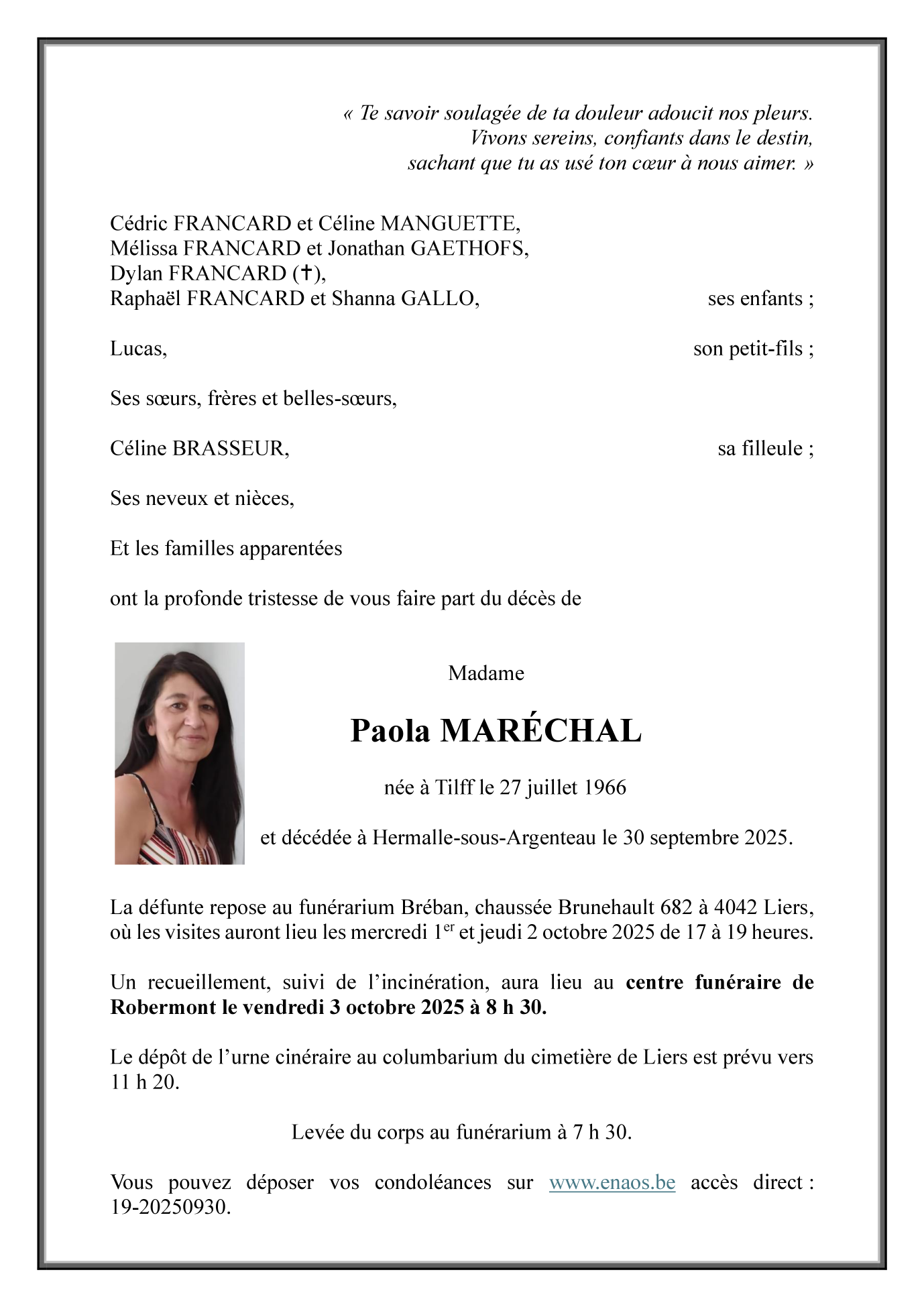 Died in Hermalle-sous-Argenteau (4681, Belgium) on 30 September 2025 at the age of 59 years