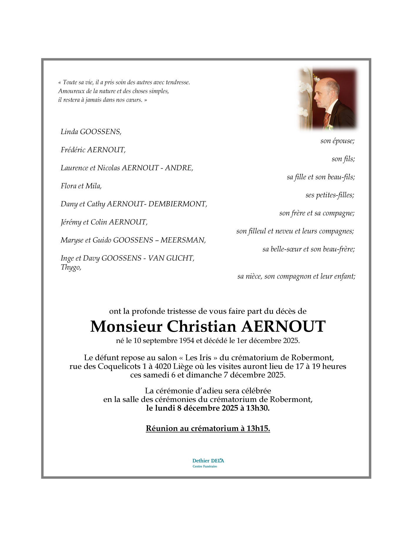 Died in Liège (4020, Belgium) on 01 December 2025 at the age of 71 years