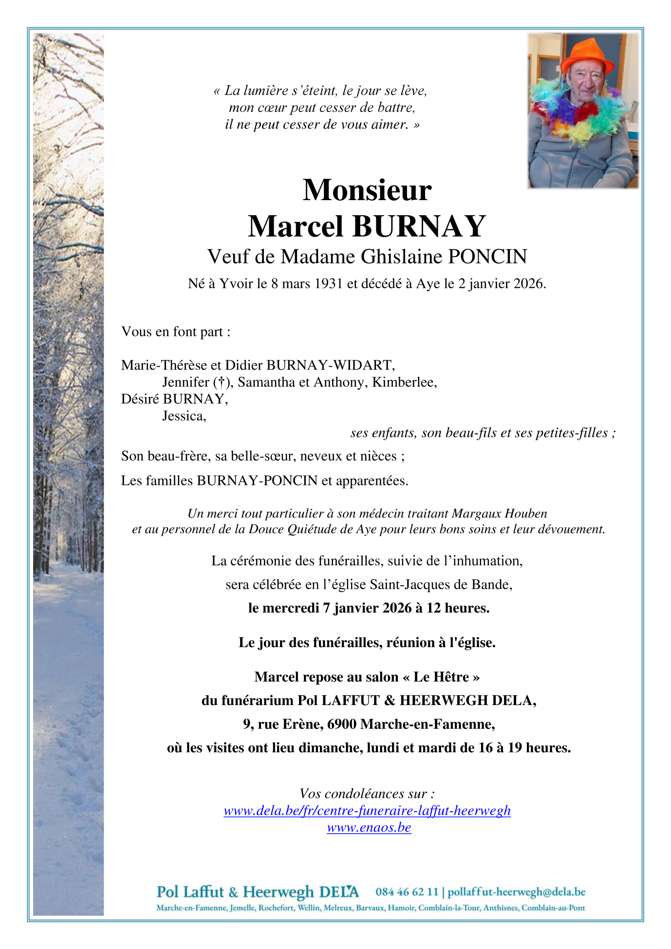 Fallecido en Aye (6900, Bélgica) el viernes, 2 de enero de 2026 a la edad de 94 años