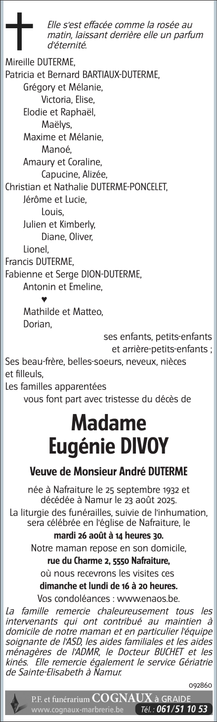 Died in Namur (5000, Belgium) on 23 August 2025 at the age of 92 years