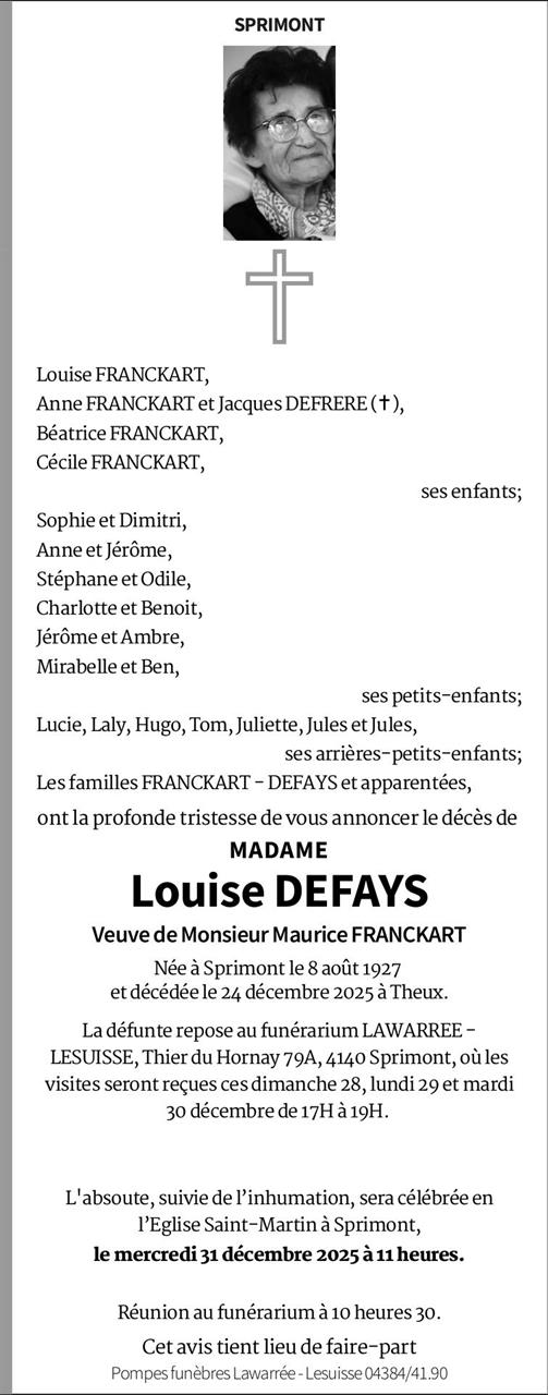 Died in Theux (4910, Belgium) on 24 December 2025 at the age of 98 years