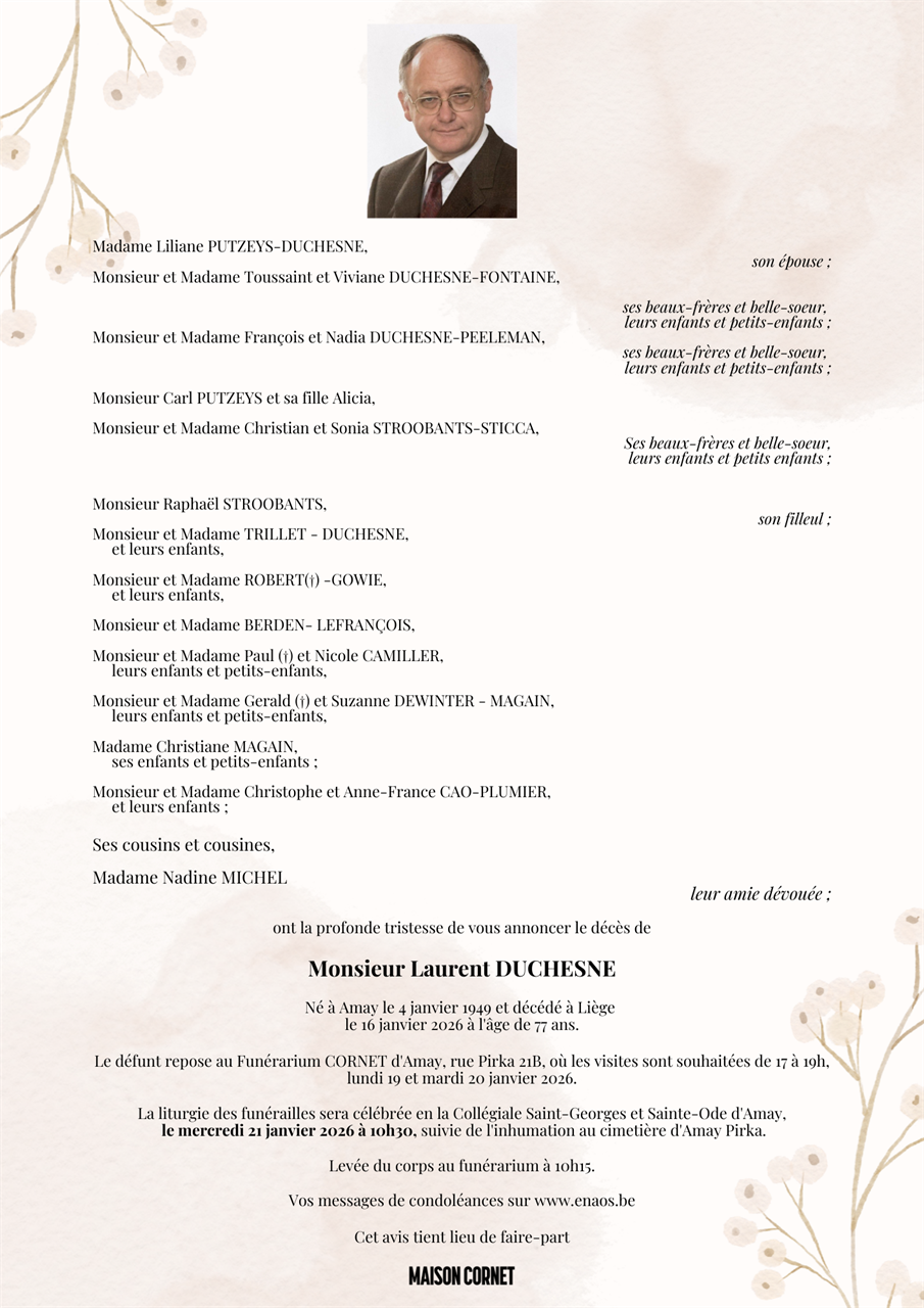 Fallecido en Liège (4000, Bélgica) el viernes, 16 de enero de 2026 a la edad de 77 años