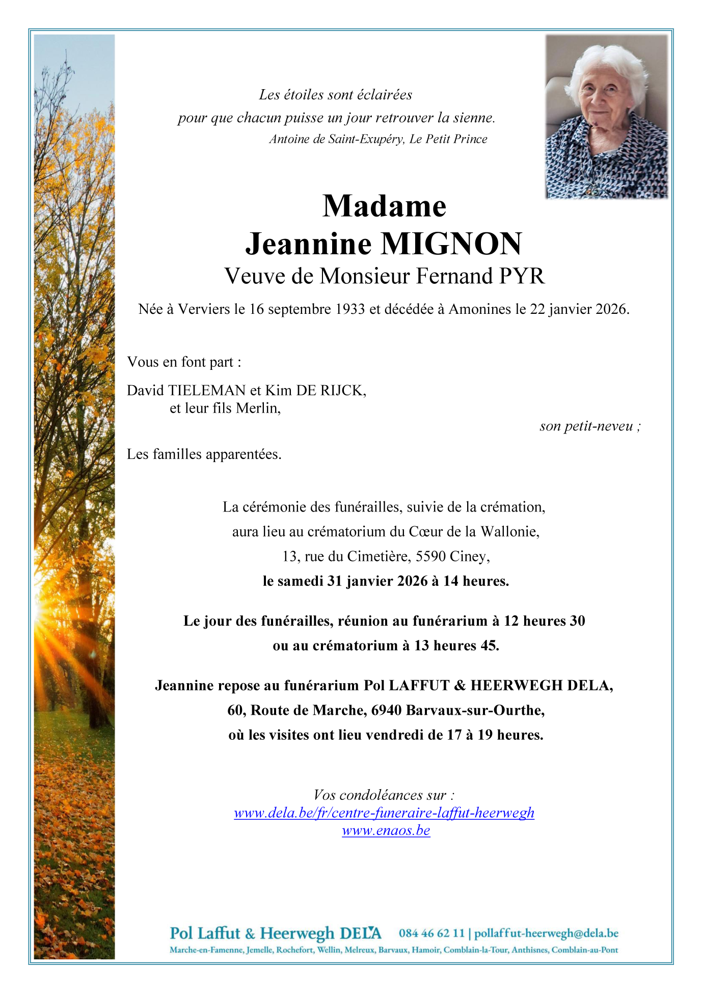 Overleden te Amonines (6997, België) op donderdag 22 januari 2026 op 92-jarige leeftijd