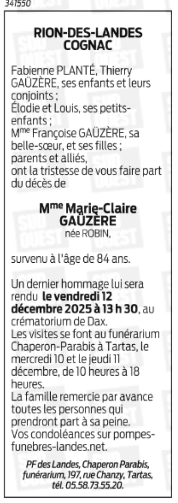 Died in Morcenx (40110, France) on 08 December 2025 at the age of 84 years