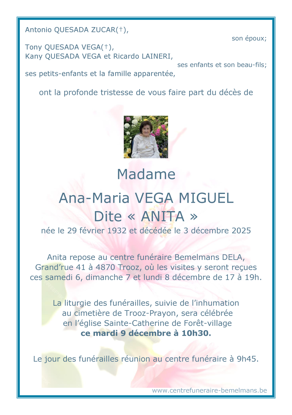 Fallecida en Liège (4000, Bélgica) el miércoles, 3 de diciembre de 2025 a la edad de 93 años