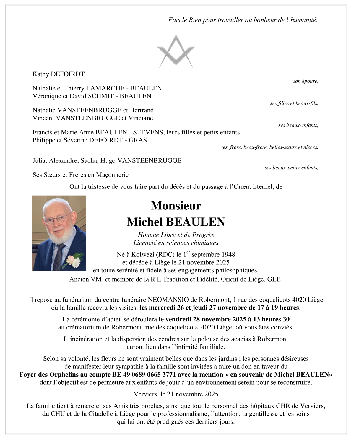 Fallecido en Liège (4000, Bélgica) el viernes, 21 de noviembre de 2025 a la edad de 77 años