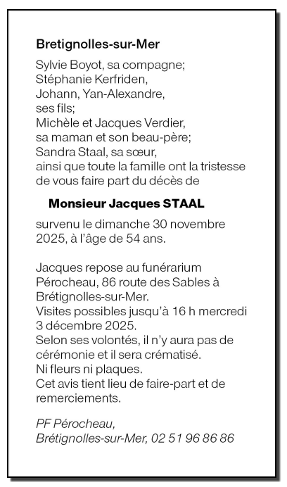 Overleden te L'Aiguillon-sur-Vie (85220, Frankrijk) op zondag 30 november 2025 op 54-jarige leeftijd