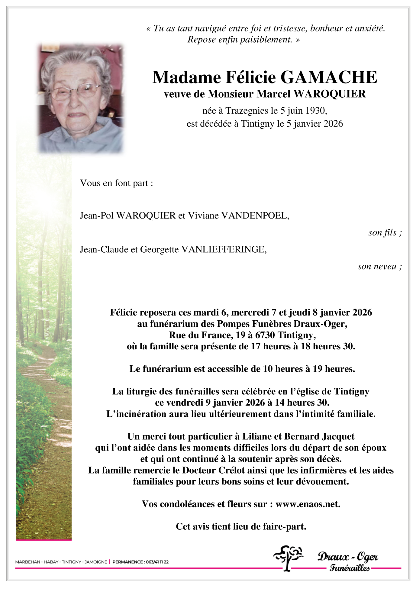 Madame Félicie GAMACHE