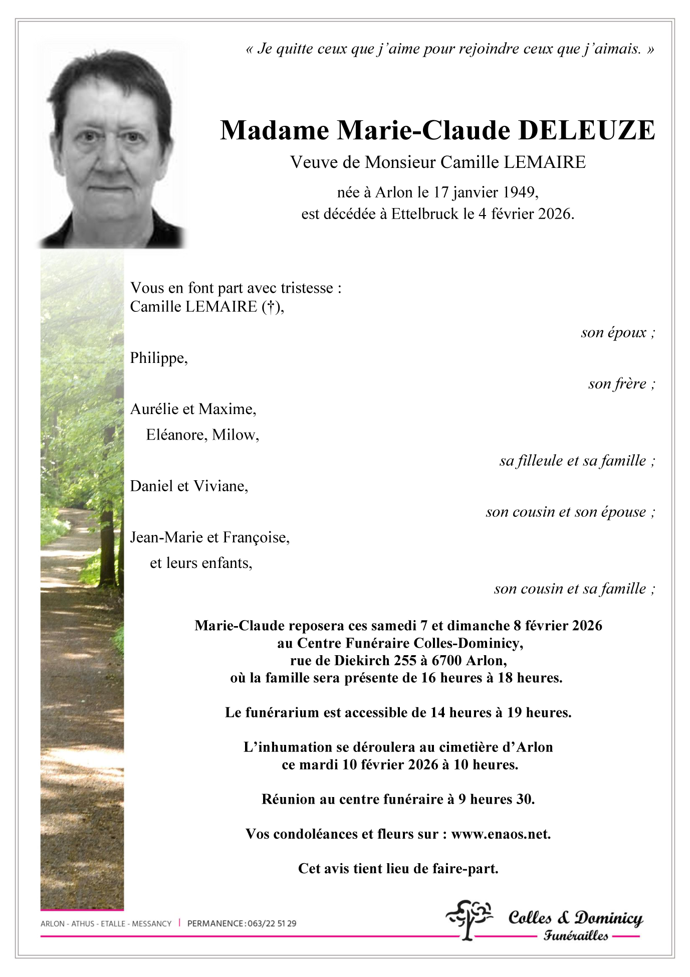 Overleden te Ettelbruck (Luxembourg) op woensdag 4 februari 2026 op 77-jarige leeftijd