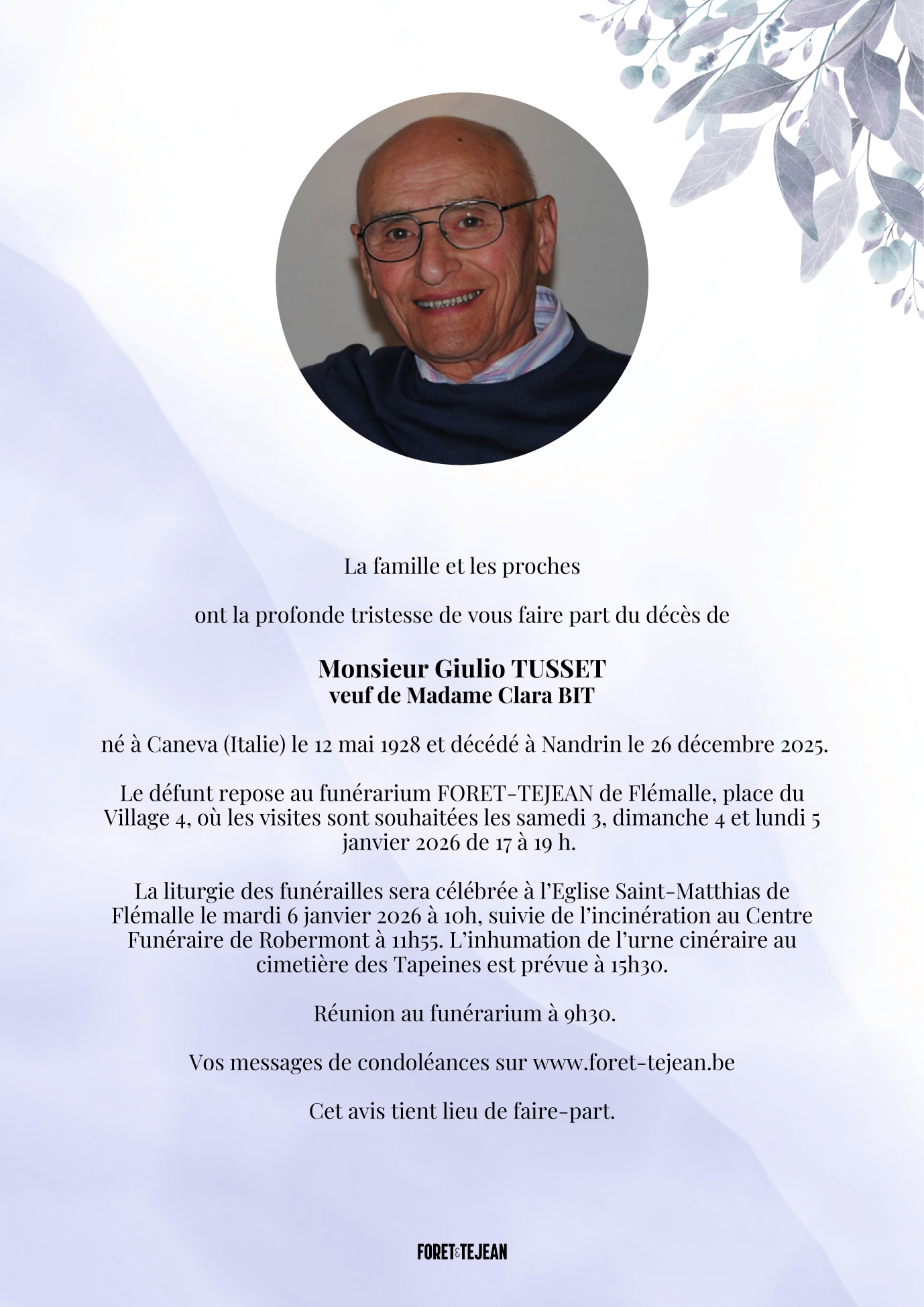 Fallecido en Nandrin (4550, Bélgica) el viernes, 26 de diciembre de 2025 a la edad de 97 años