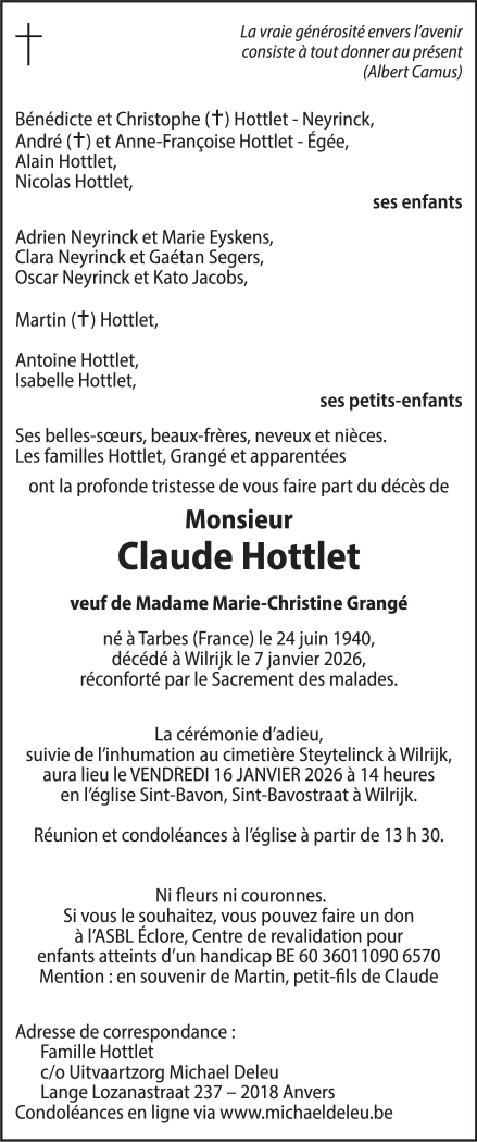 Overleden te Wilrijk (Antwerpen) (2610, België) op woensdag 7 januari 2026 op 85-jarige leeftijd