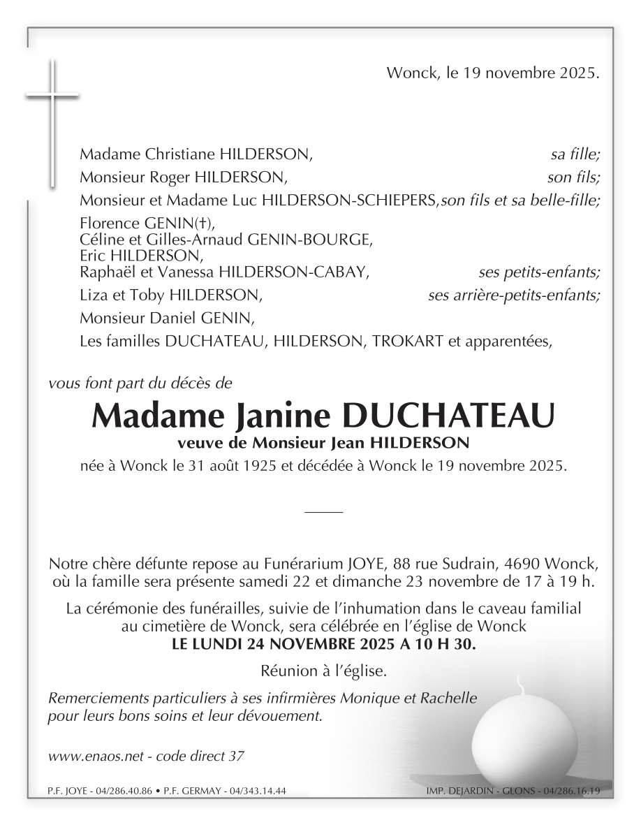 Died in Wonck (4690, Belgium) on 19 November 2025 at the age of 100 years