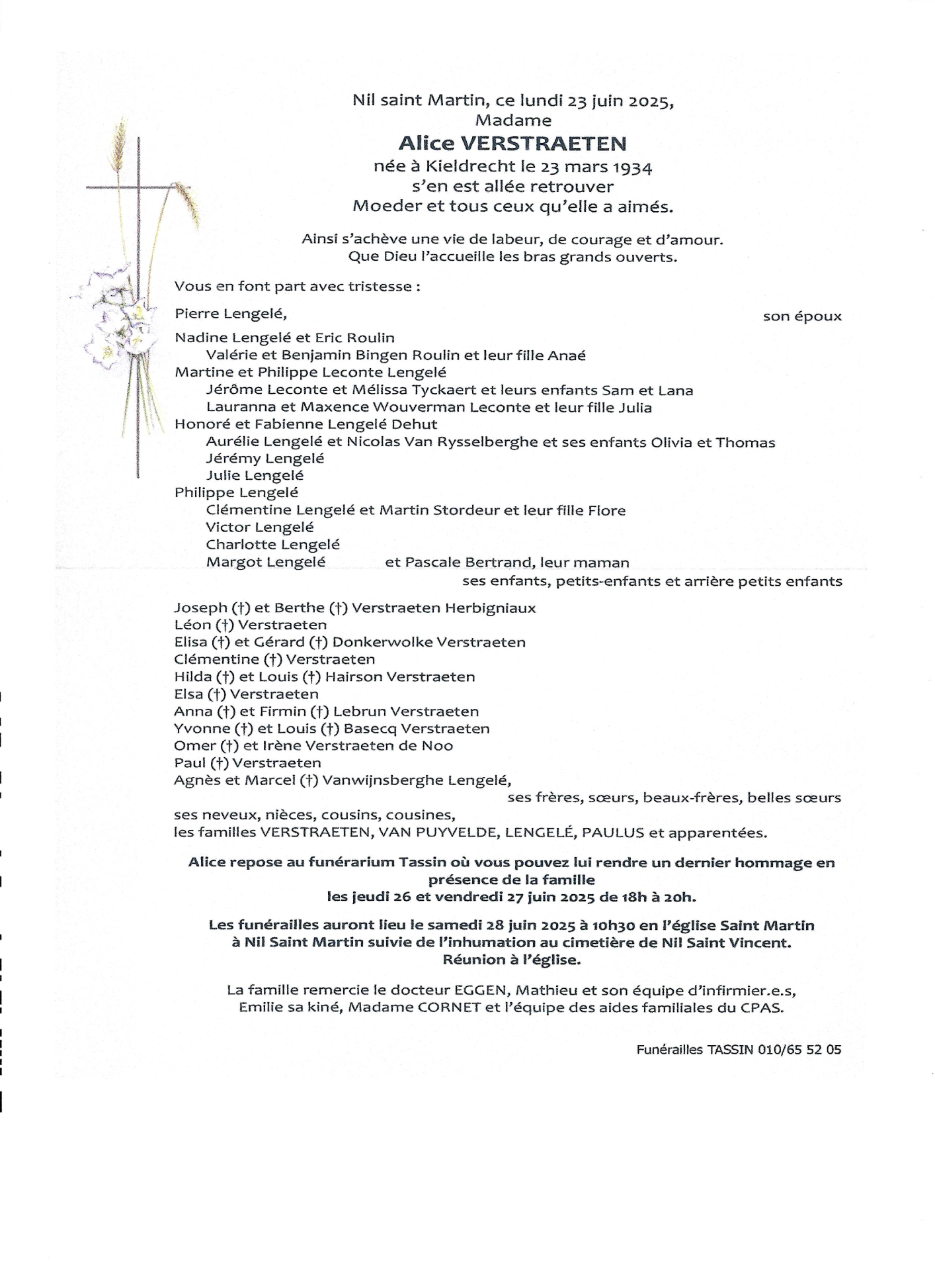 Died in Nil-Saint-Vincent-Saint-Martin (1457, Belgium) on 23 June 2025 at the age of 91 years
