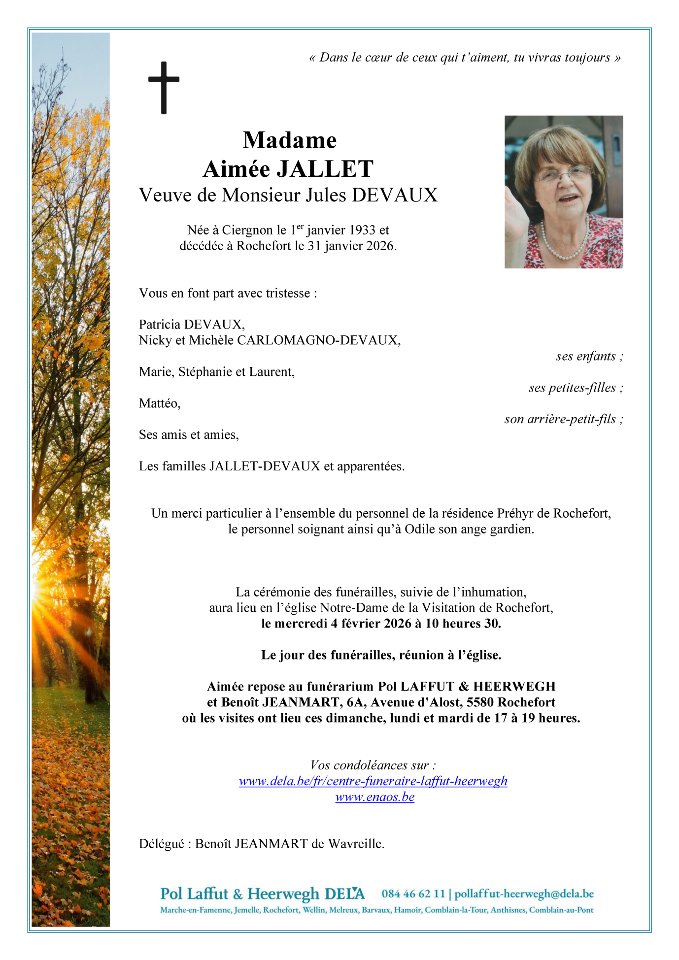 Fallecida en Rochefort (5580, Bélgica) el sábado, 31 de enero de 2026 a la edad de 93 años