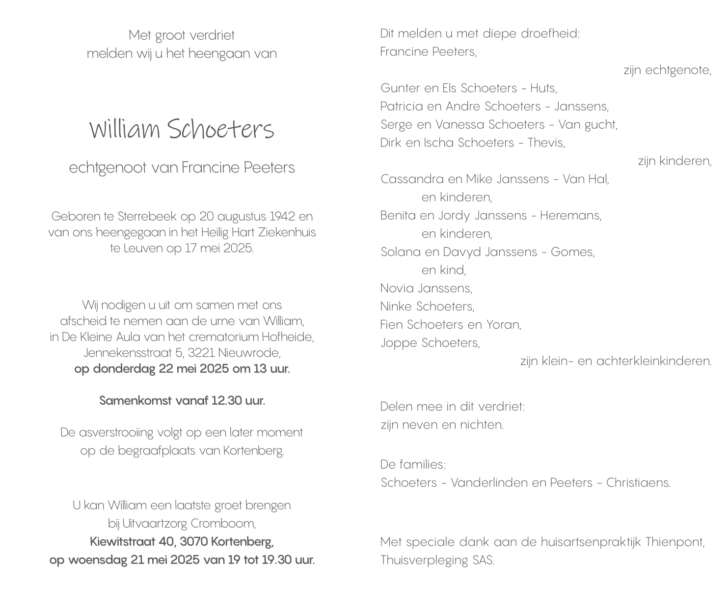 Overleden te Leuven (3000, België) op zaterdag 17 mei 2025 op 82-jarige leeftijd