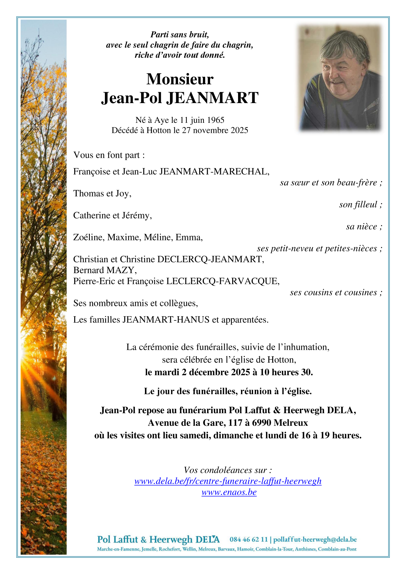 Fallecido en Hotton (6990, Bélgica) el jueves, 27 de noviembre de 2025 a la edad de 60 años