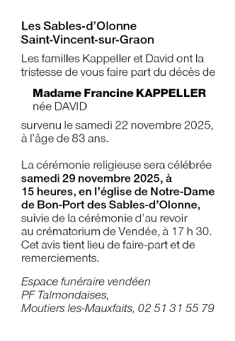 Died in Saint-Vincent-sur-Graon (85540, France) on 22 November 2025 at the age of 83 years