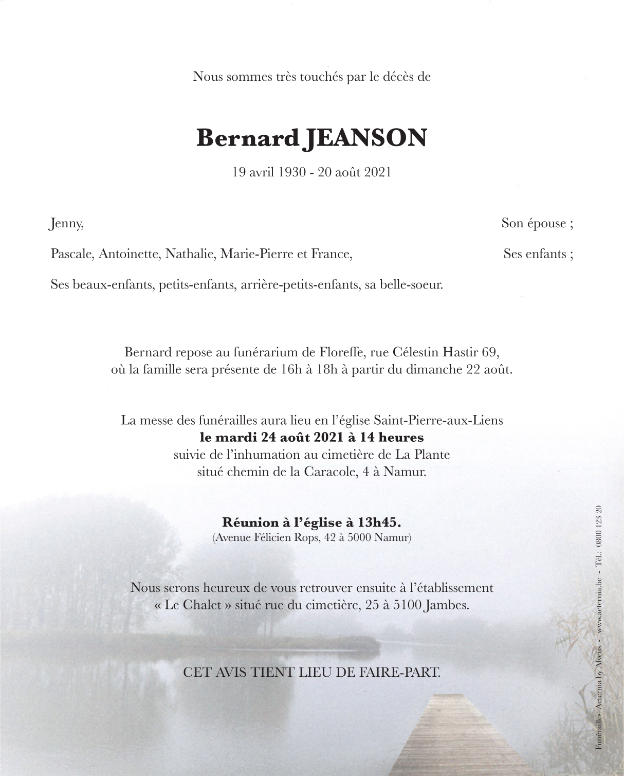 Died in Waremme (4300, Belgium) on 20 August 2021 at the age of 91 years