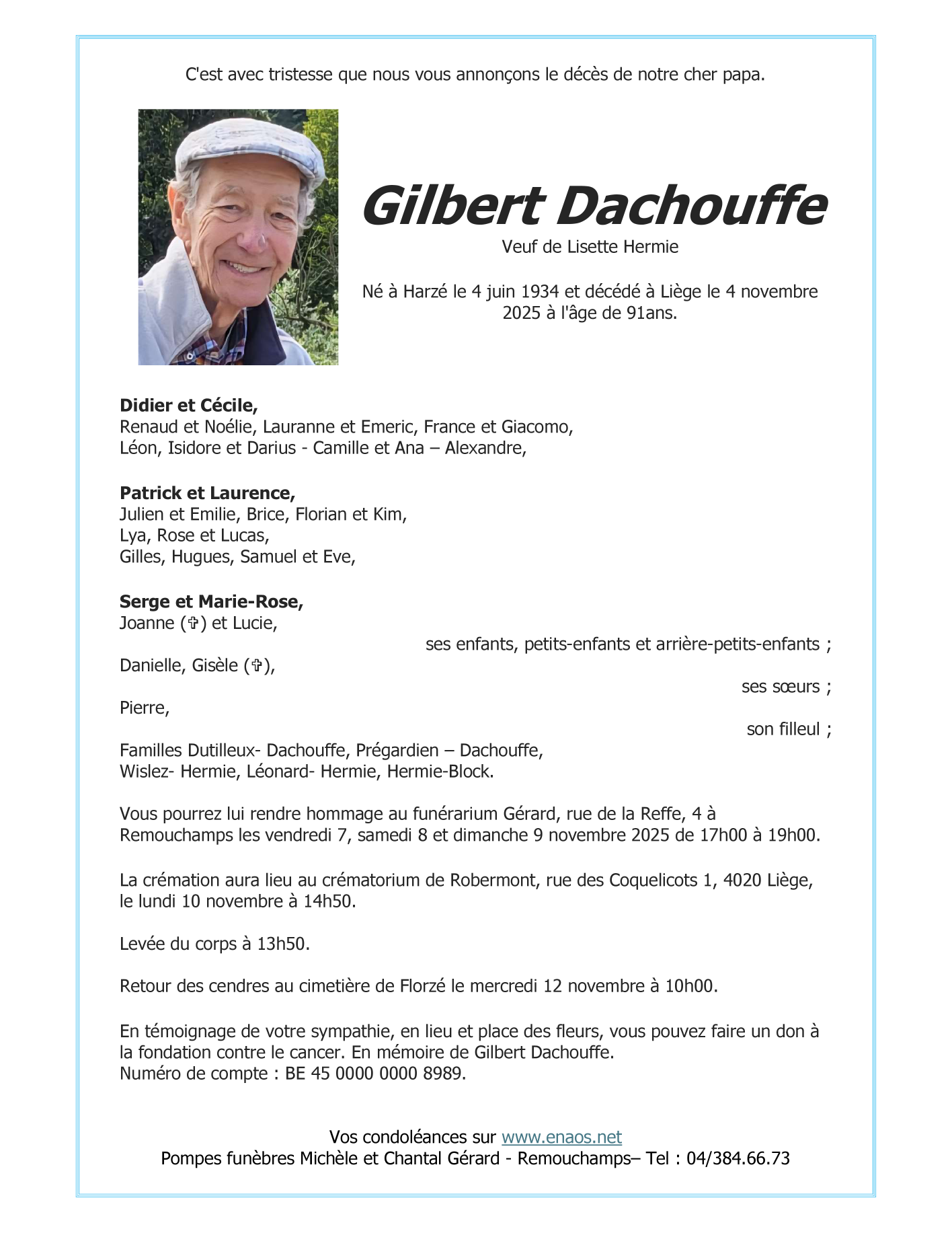 Fallecido en Liège (4000, Bélgica) el martes, 4 de noviembre de 2025 a la edad de 91 años