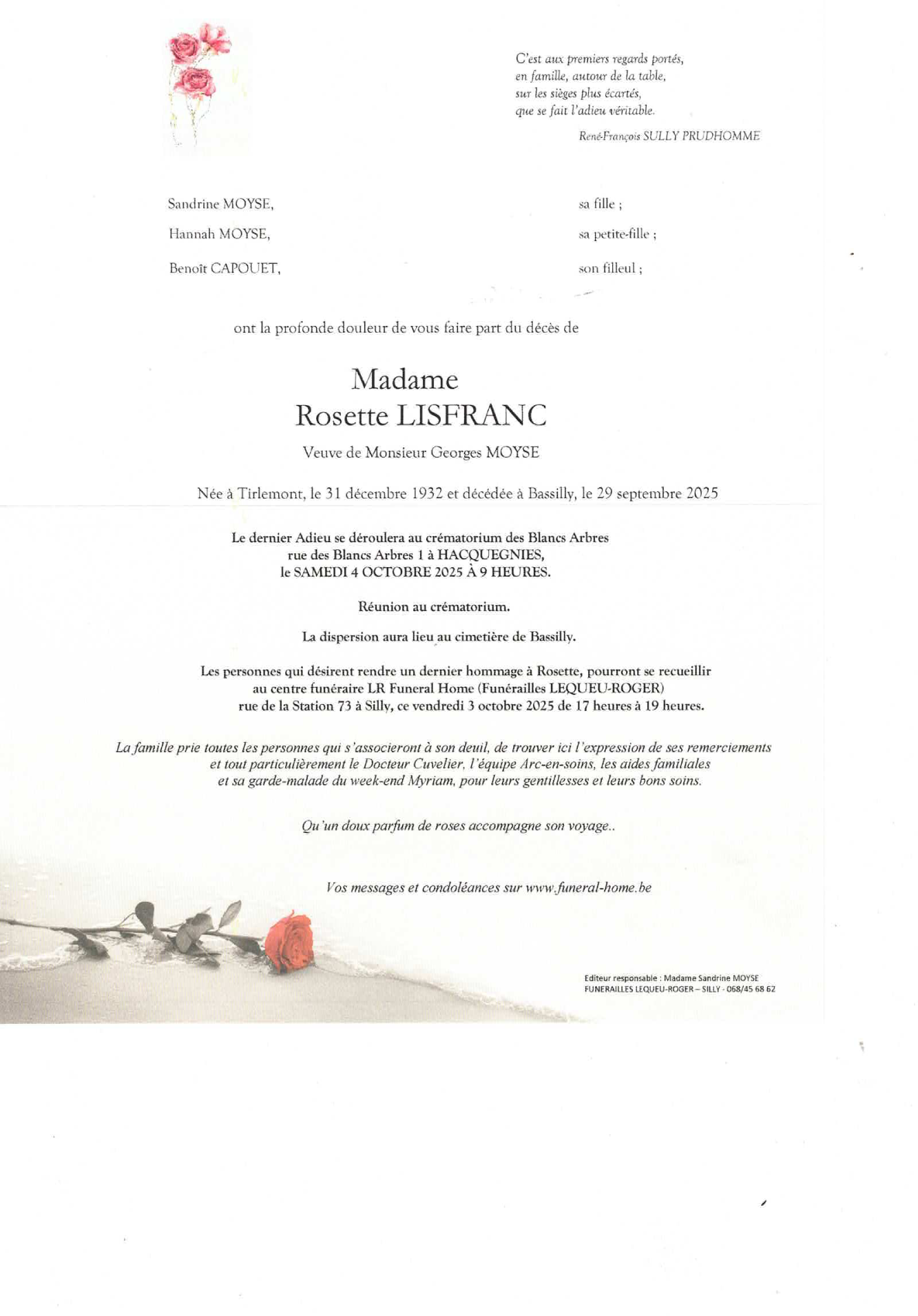 Fallecida en Bassilly (7830, Bélgica) el lunes, 29 de septiembre de 2025 a la edad de 92 años
