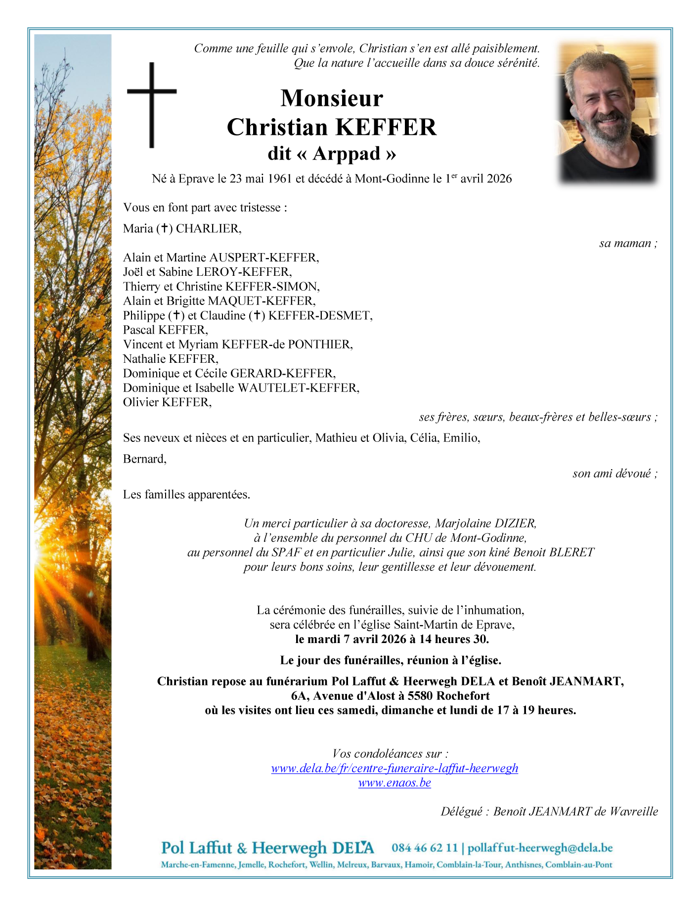 Fallecido en Yvoir (5530, Bélgica) el miércoles, 1 de abril de 2026 a la edad de 64 años