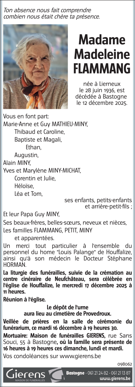 Died in Bastogne (6600, Belgium) on 12 December 2025 at the age of 89 years