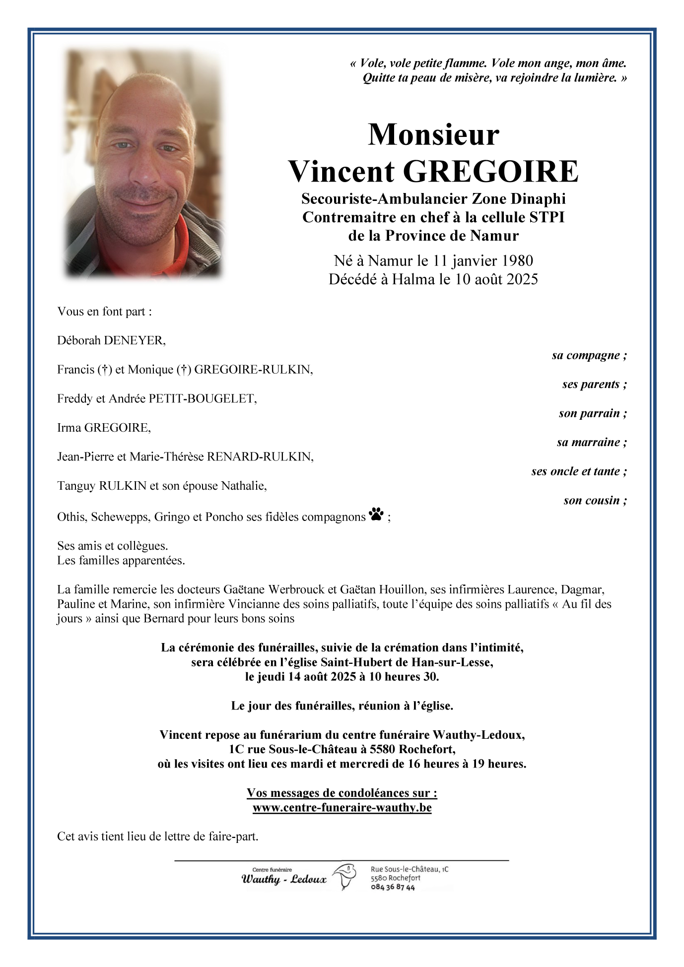 Fallecido en Halma (6922, Bélgica) el domingo, 10 de agosto de 2025 a la edad de 45 años