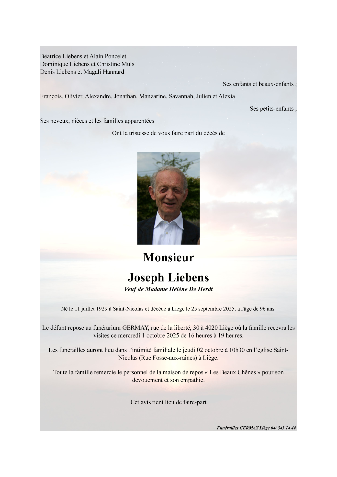 Fallecido en Rocourt (4000, Bélgica) el jueves, 25 de septiembre de 2025 a la edad de 96 años