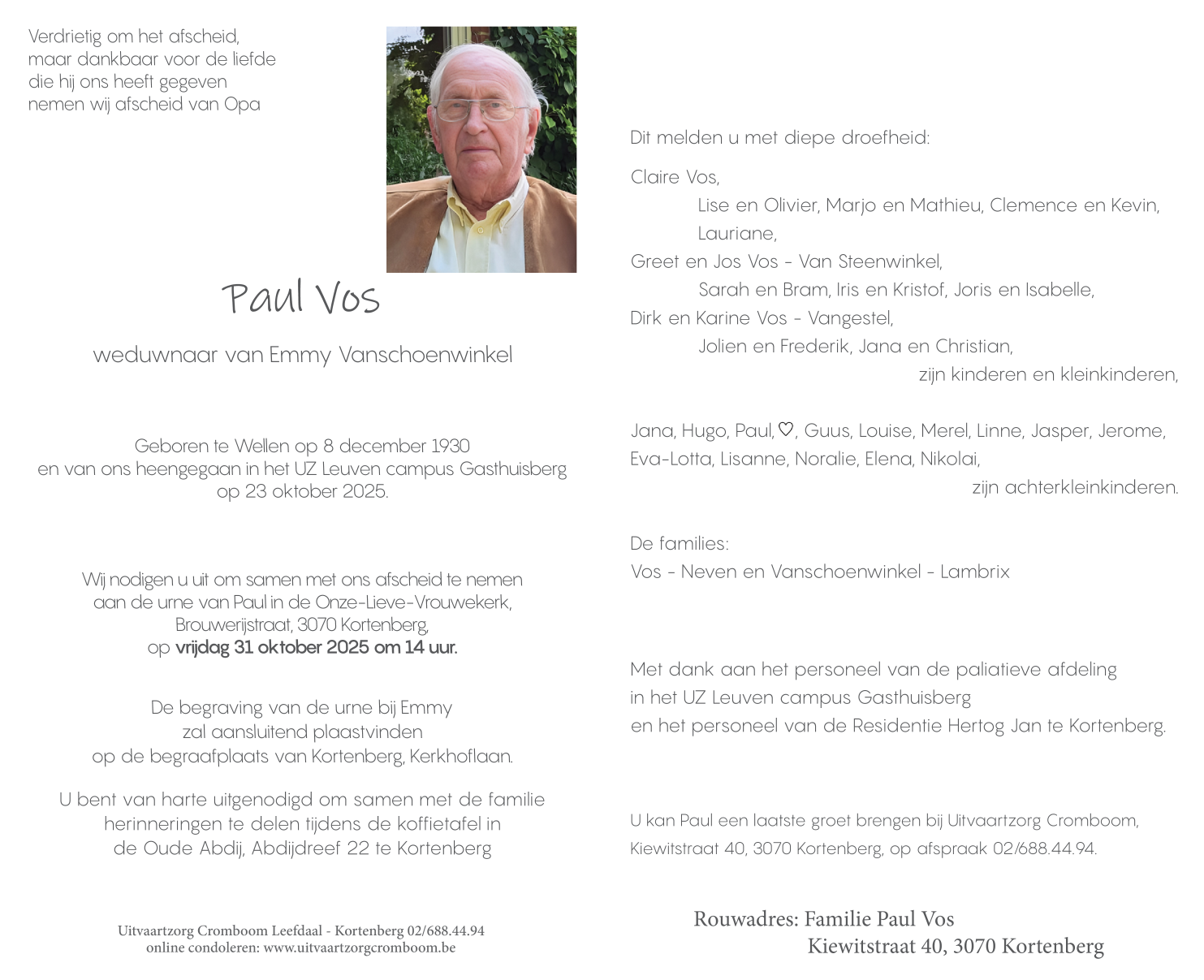 Viudo de Mevrouw Emmy Vanschoenwinkel