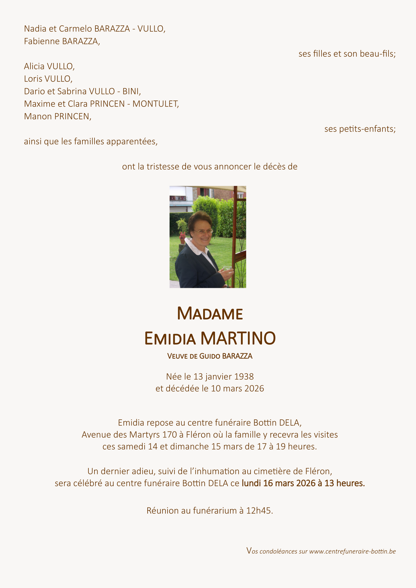 Fallecida en Fléron (4624, Bélgica) el martes, 10 de marzo de 2026 a la edad de 88 años