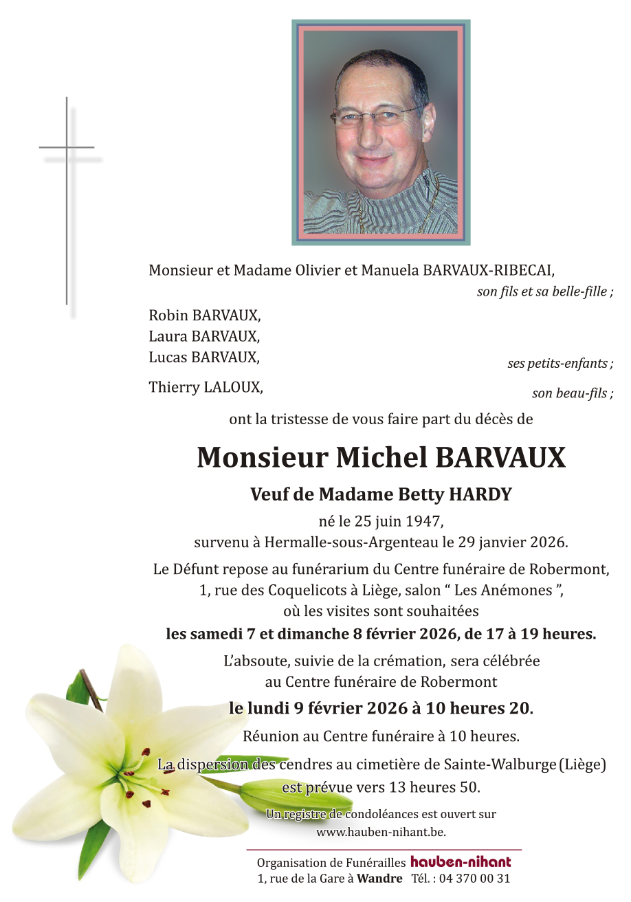 Overleden te Hermalle-sous-Argenteau (4681, België) op donderdag 29 januari 2026 op 78-jarige leeftijd