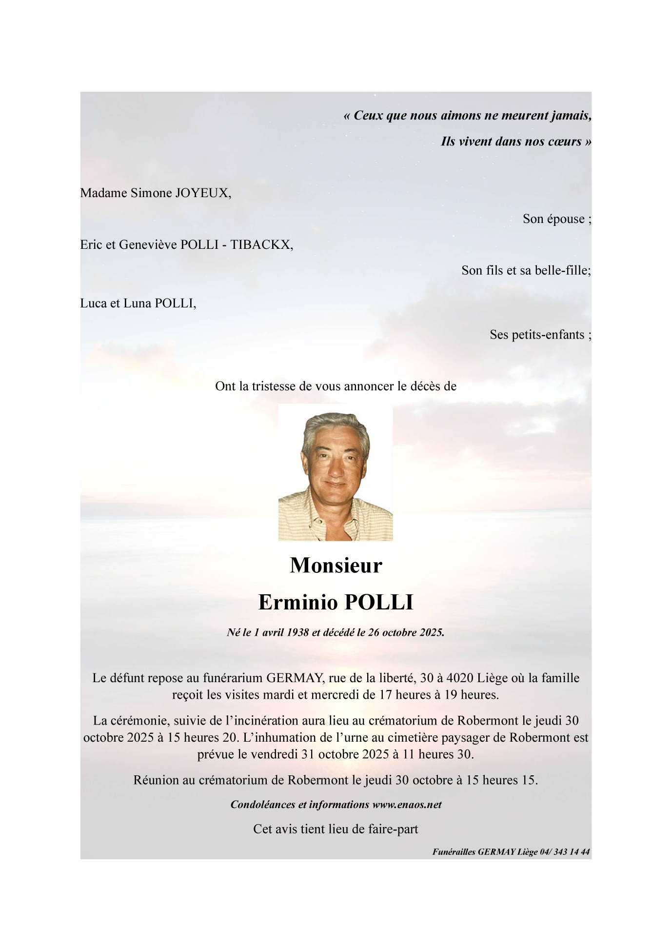 Fallecido en Chênée (4032, Bélgica) el domingo, 26 de octubre de 2025 a la edad de 87 años