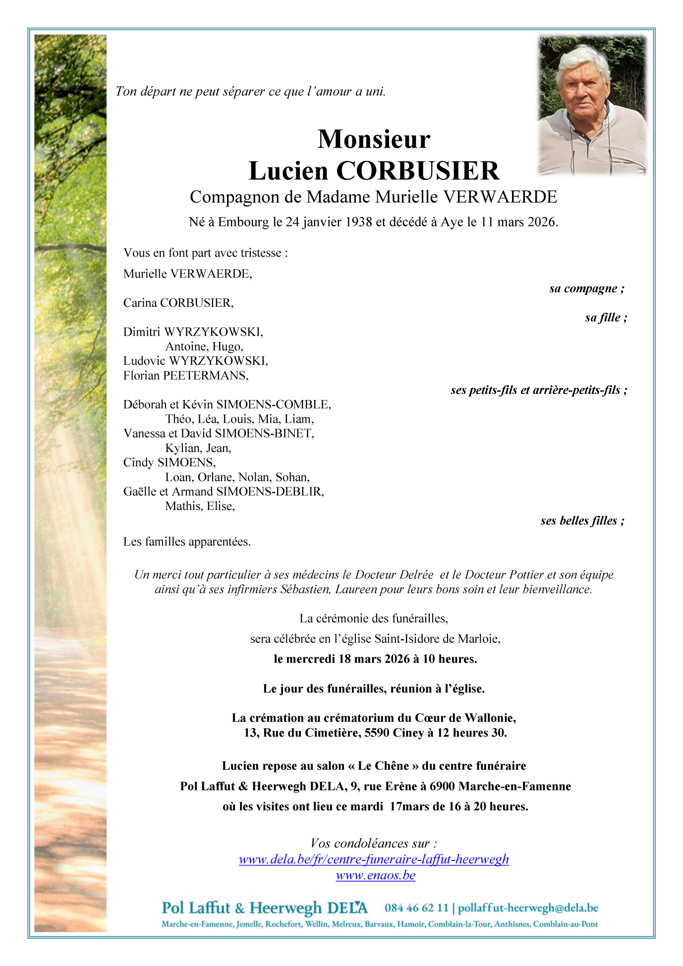 Fallecido en Aye (6900, Bélgica) el miércoles, 11 de marzo de 2026 a la edad de 88 años