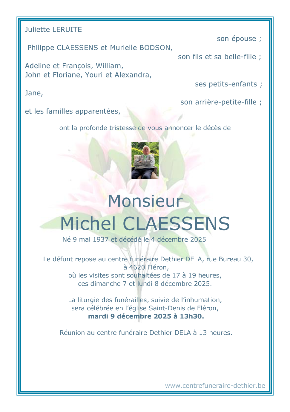 Overleden te Chênée (4032, België) op donderdag 4 december 2025 op 88-jarige leeftijd