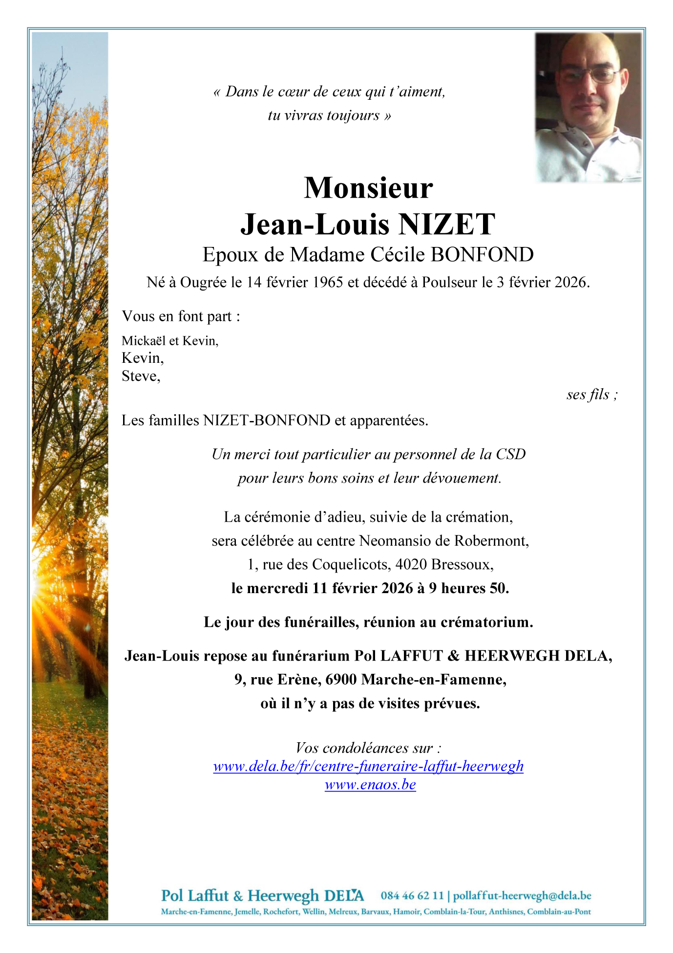 Fallecido en Poulseur (4171, Bélgica) el martes, 3 de febrero de 2026 a la edad de 60 años