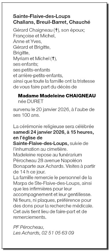 Madame Madeleine CHAIGNEAU née DURET