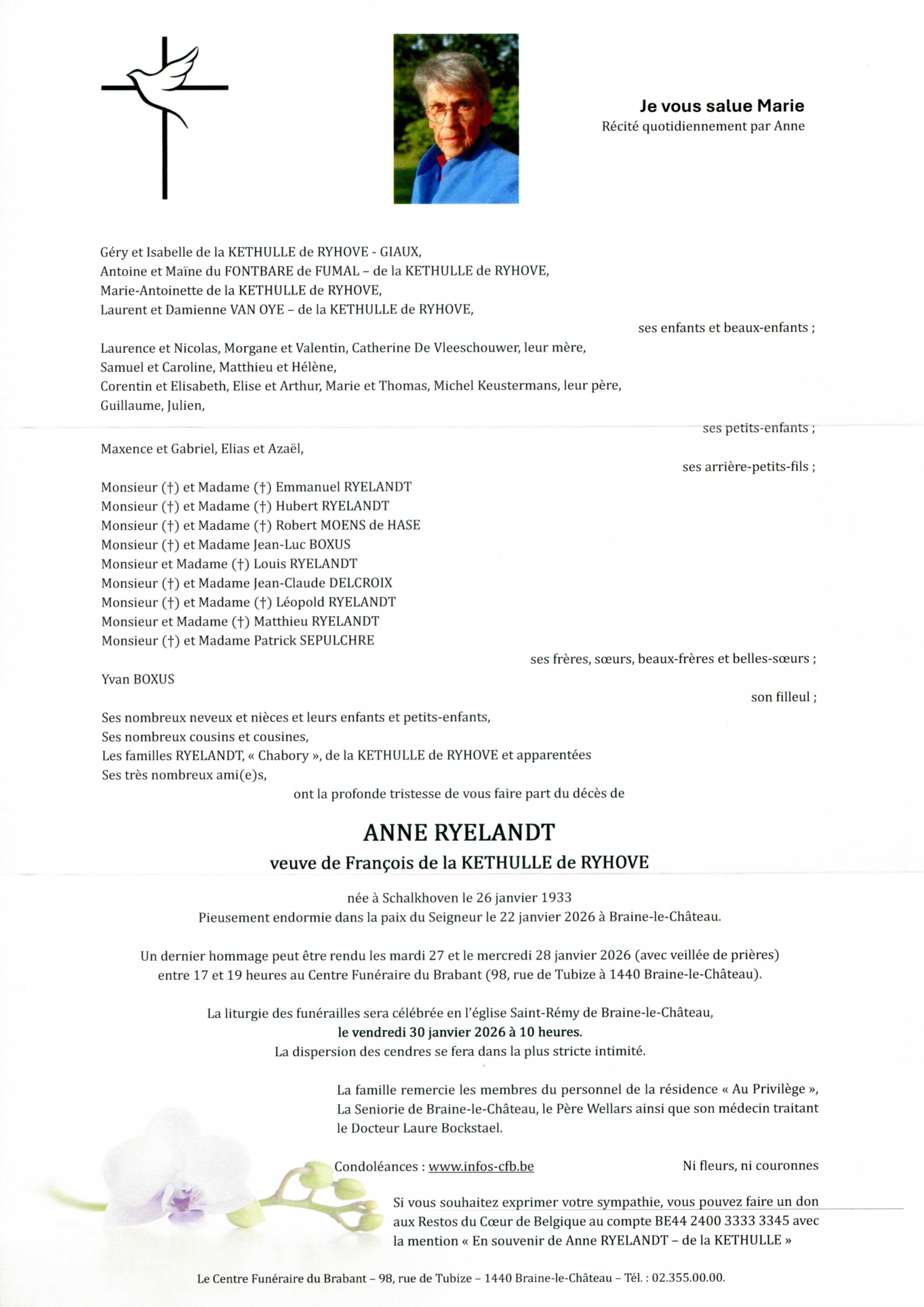 Fallecida en Braine-le-Château (1440, Bélgica) el jueves, 22 de enero de 2026 a la edad de 92 años