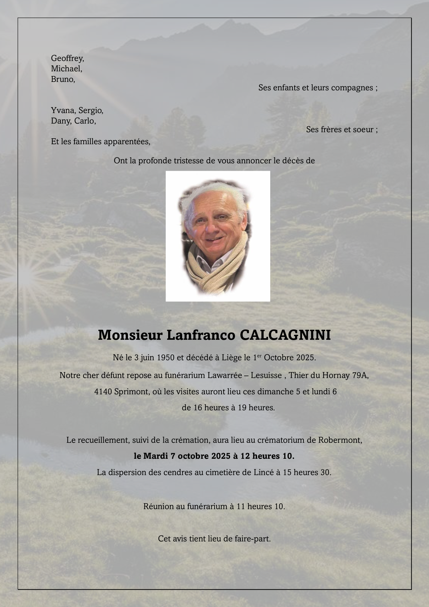 Décédé à Liège (4000, Belgique) le mercredi 1 octobre 2025 à l'âge de 75 ans