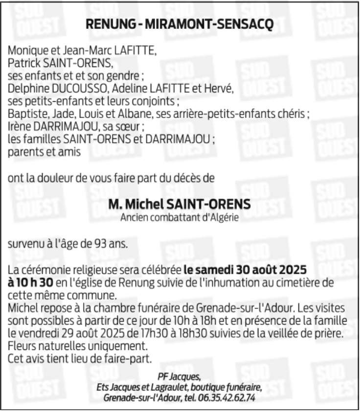 Overleden te Mont-de-Marsan (40000, Frankrijk) op woensdag 27 augustus 2025 op 93-jarige leeftijd