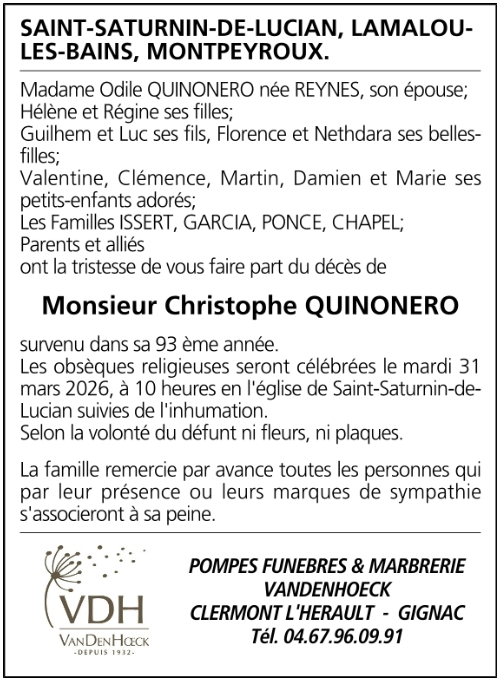 Died in Montpellier (34000, France) on 27 March 2026 at the age of 92 years
