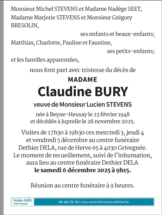 Fallecida en Fexhe-Slins (4458, Bélgica) el viernes, 28 de noviembre de 2025 a la edad de 77 años