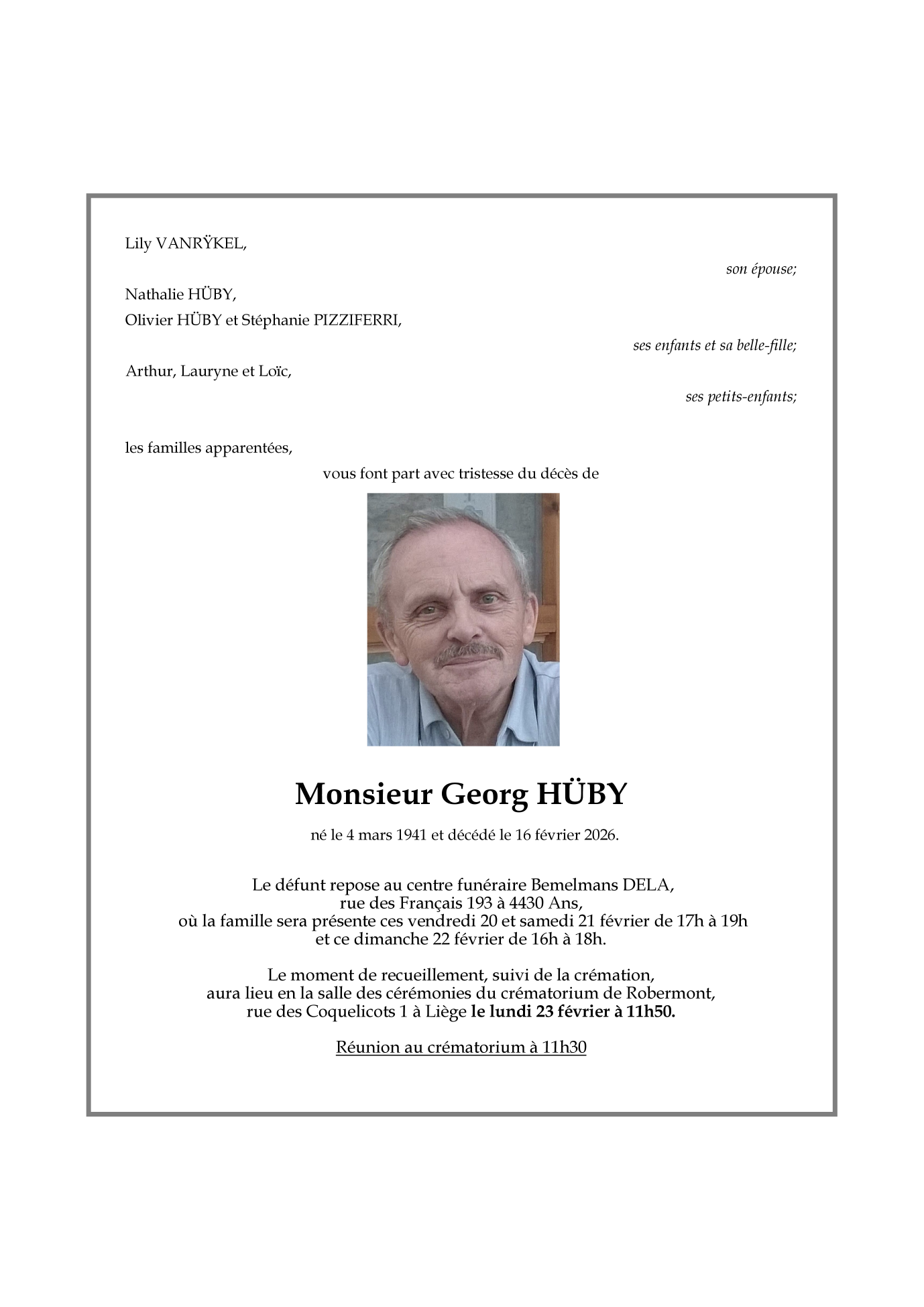 Epoux de Madame Liliane VANRŸKEL