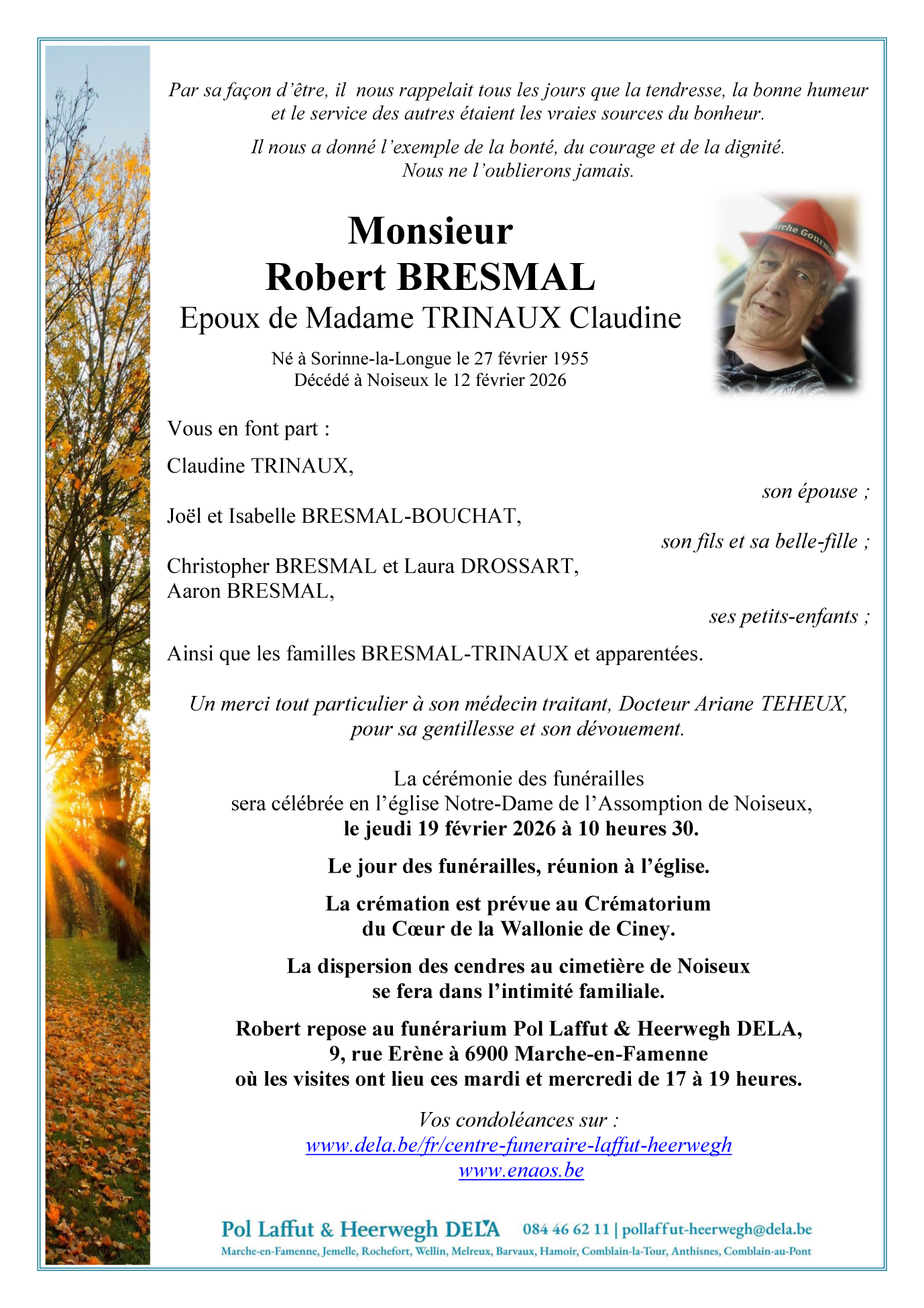 Died in Noiseux (5377, Belgium) on 12 February 2026 at the age of 70 years