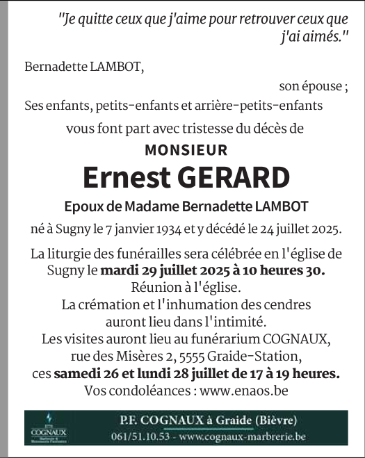Fallecido en Sugny (5550, Bélgica) el jueves, 24 de julio de 2025 a la edad de 91 años