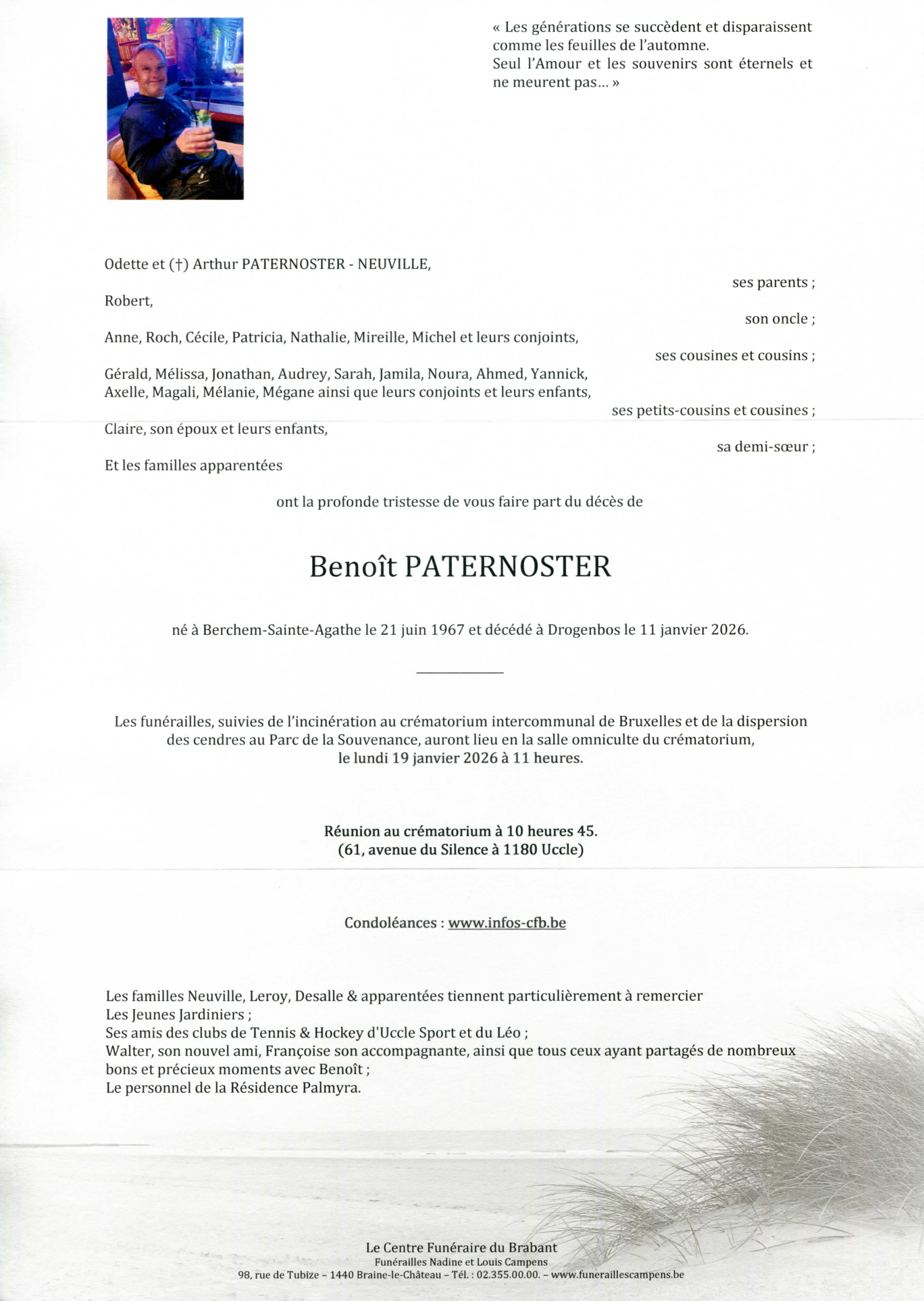 Fallecido en Drogenbos (1620, Bélgica) el domingo, 11 de enero de 2026 a la edad de 58 años