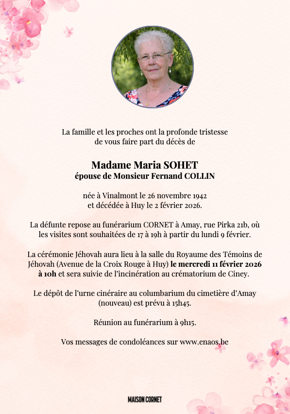 Fallecida en Huy (4500, Bélgica) el lunes, 2 de febrero de 2026 a la edad de 83 años
