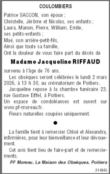 Madame Jacqueline SACCON née RIFFAUD