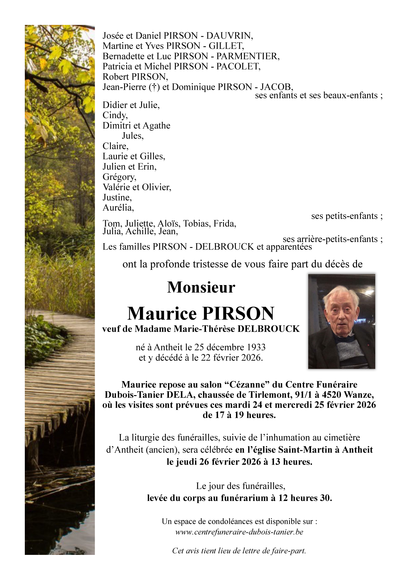Fallecido en Antheit (4520, Bélgica) el domingo, 22 de febrero de 2026 a la edad de 92 años